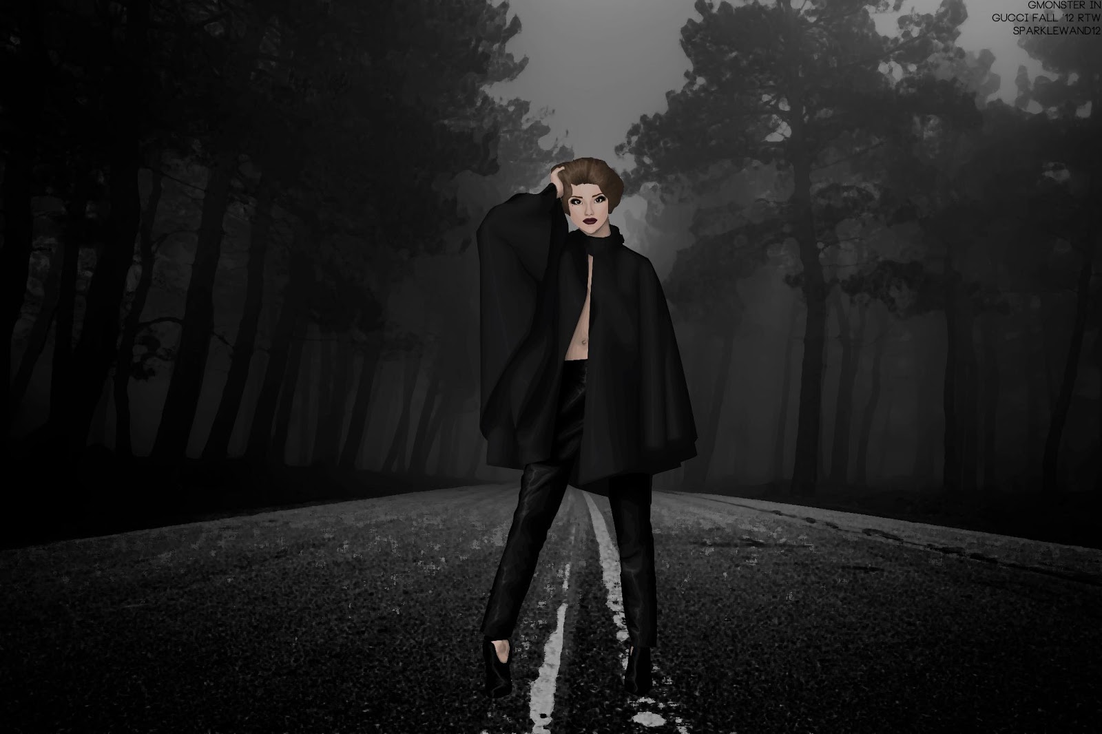 Roxanne: I really like this! I find the outfit to be a stunning addition. A very wise choice! I know you expressed your disliking of the task, as you were confused as to what you needed to do! I take full responsibility in that as I feel I was to vague in my task briefing. But, since you got a demon I feel the model should have a darker presence than just a simple make up pallet that you gave. the pants are just amazing! It looks like leather! You made it very smooth and very realistic and I am loving it! The cape is my favorite piece in this photo. Perfectly shaded and perfectly high lighted! I do like the creepy forest road. Its vast and empty and gives me a sort of eerie feeling like I wanted! Overall you did very well!